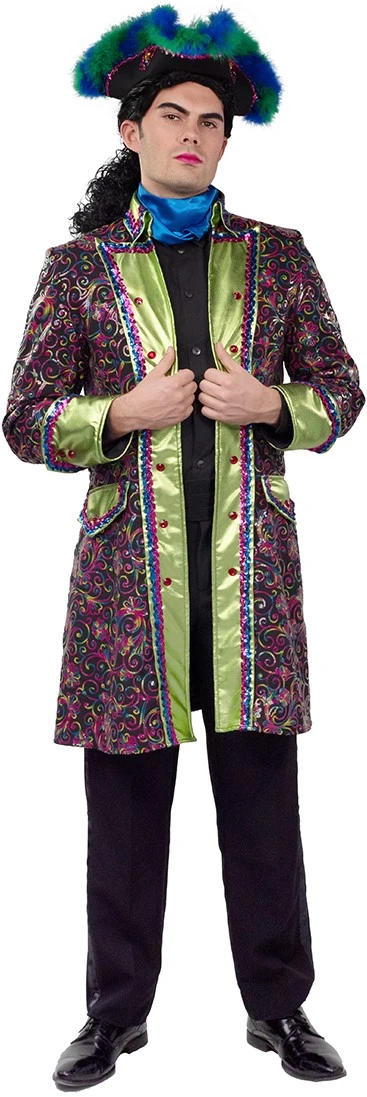 Kleur jas: zwart, de manchetten en revers zijn metallic groen kleurig