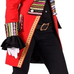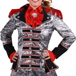 Details: zwarte epauletten met rode franjes