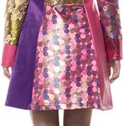 Patroon: diverse figuren, in de jas zitten zilver kleurige glitters verwerkt