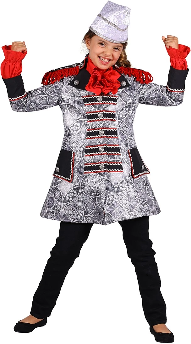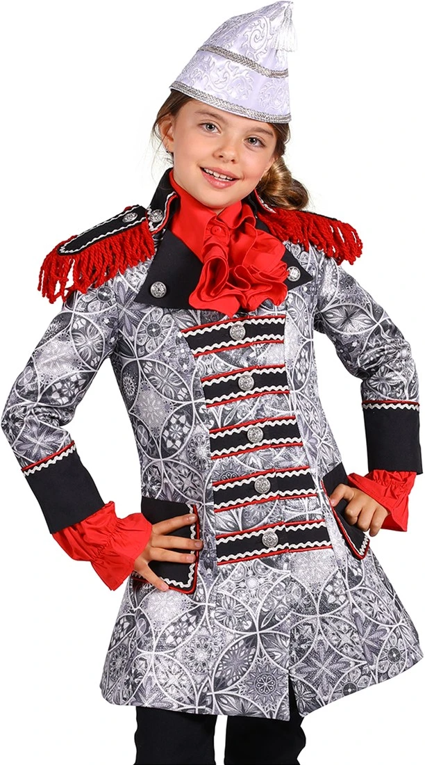 Patroon: diverse figuren, in de jas zitten zilver kleurige glitters verwerkt