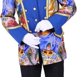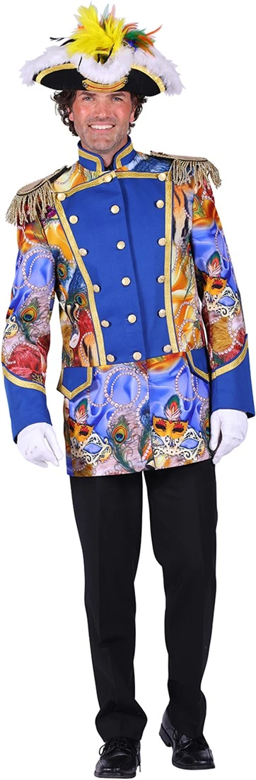 Een sierlijke carnavalsjas met een nog sierlijkere print. Deze jas voor heren is dan ook erg geschikt om aan te trekken naar de carnaval!