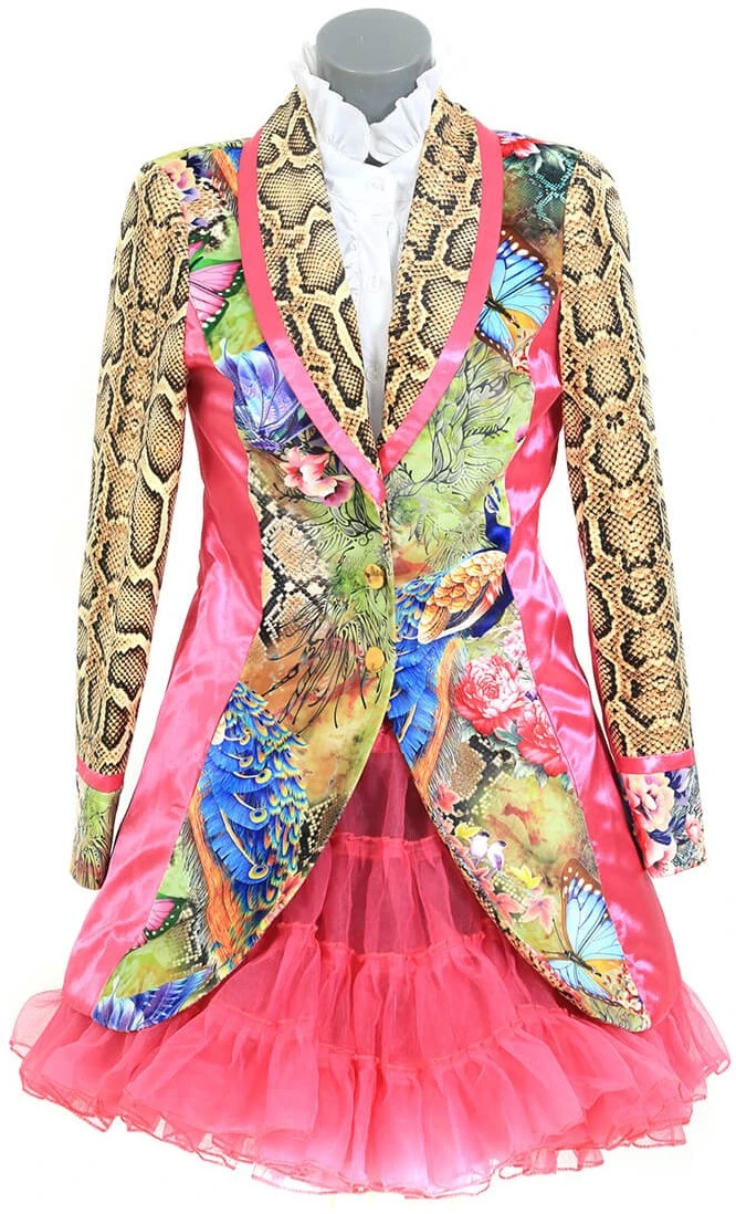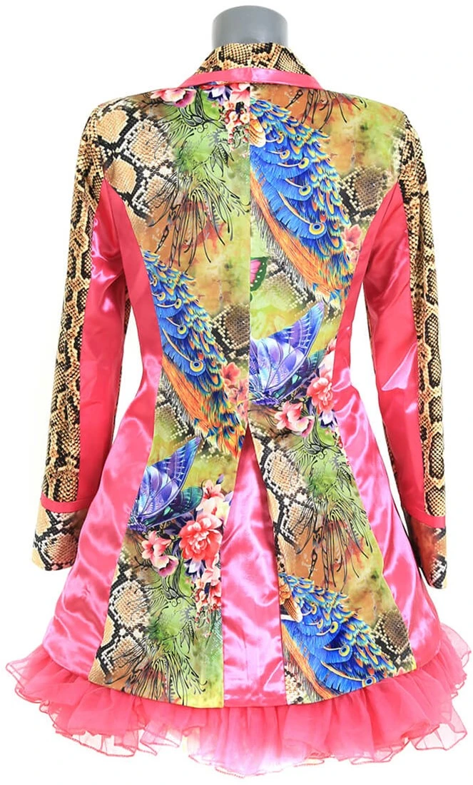 Details: de zijkanten, zoomen en mouwen zijn afzet met satijnen stof