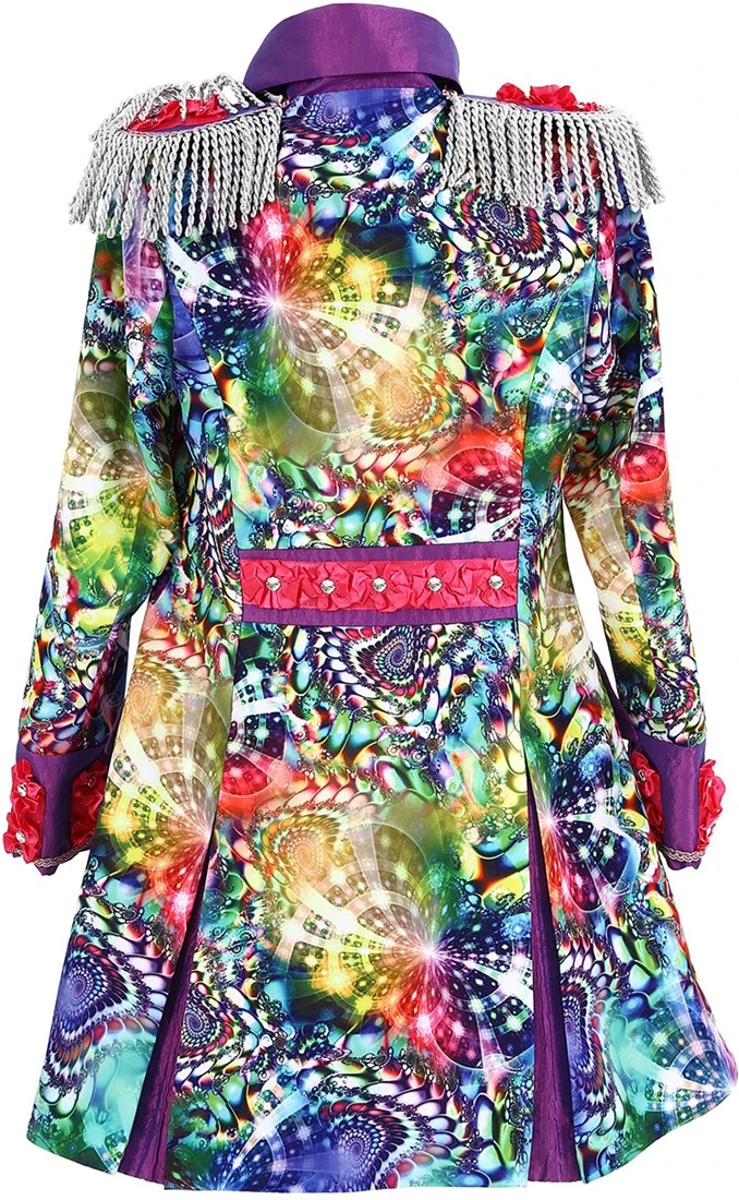 Deze luxe carnavalsjas is zeker een eyecatcher! Met deze fel gekleurde print val je zeker op tussen feestvierders.