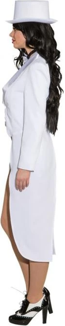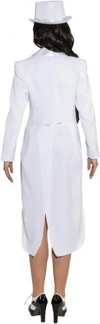 Dames slipjas wit Luxe met satijnen details aan de kraag. Dit jasje is leuk te combineren met verschillende accessoires zoals een strik, hoed en stok.