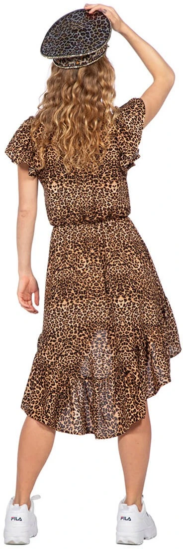 Zomerse jurk met panter print voor op een festival of een bohemian of Ibiza stijl party. In deze jurk van soepel vallende stof kun je eens lekker los gaan. Maak je outfit compleet met een hippe bril of een zomerse hoed en je valt zeker op.