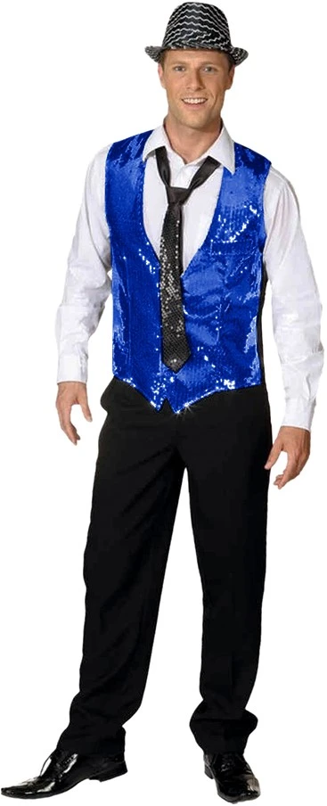 Mooi heren glitter gilet in de kleur blauw. Ook verkrijgbaar in andere kleuren. Ideaal om te gebruiken tijdens een glitter en glamour feest.