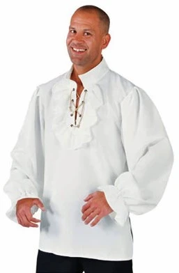Details: ruim vallend hemd met op de borst een veter sluiting en ruches