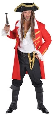 Heren Piratenjas Rood, een mooie lange mantel in piraten stijl. Bijpassende hoed los verkrijgbaar.