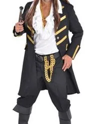 Heren Piratenjas Zwart, een mooie lange mantel in piraten stijl.