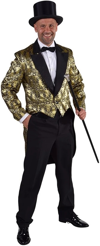 Een mooie zwarte slipjas met gouden (ook verkrijgbaar met zilveren) details en brokaat. Bijpassende accessoires zoals een hoed of staf zijn apart verkrijgbaar.