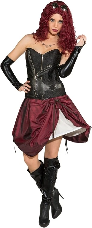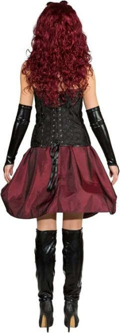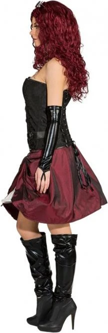 Stoere hoepelrok Steampunk! Dit opvallende rok heeft een leuke strikdetail aan de voorkant zodat dit rokje een speelse uitstraling krijgt. Dit rokje heeft een rits en een knoop aan de achterkant en is van katoen en polyester.