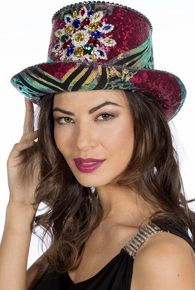 Details: gekleurde pailletten en voorop een bloem van strass stenen