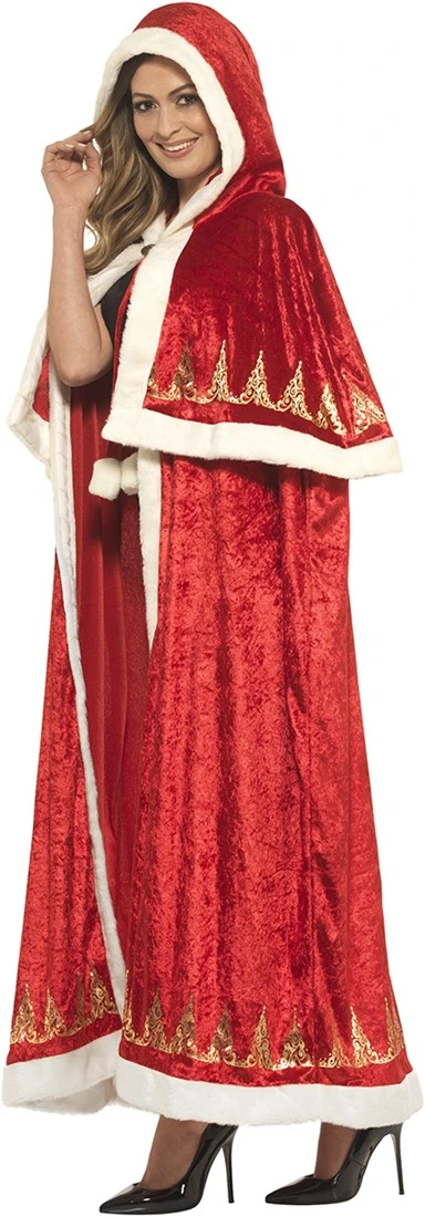Een prachtige lange kerstcape voor dames. Ideaal om over een normaal jurkje heen aan te trekken.