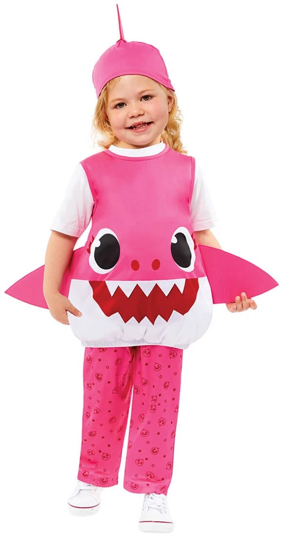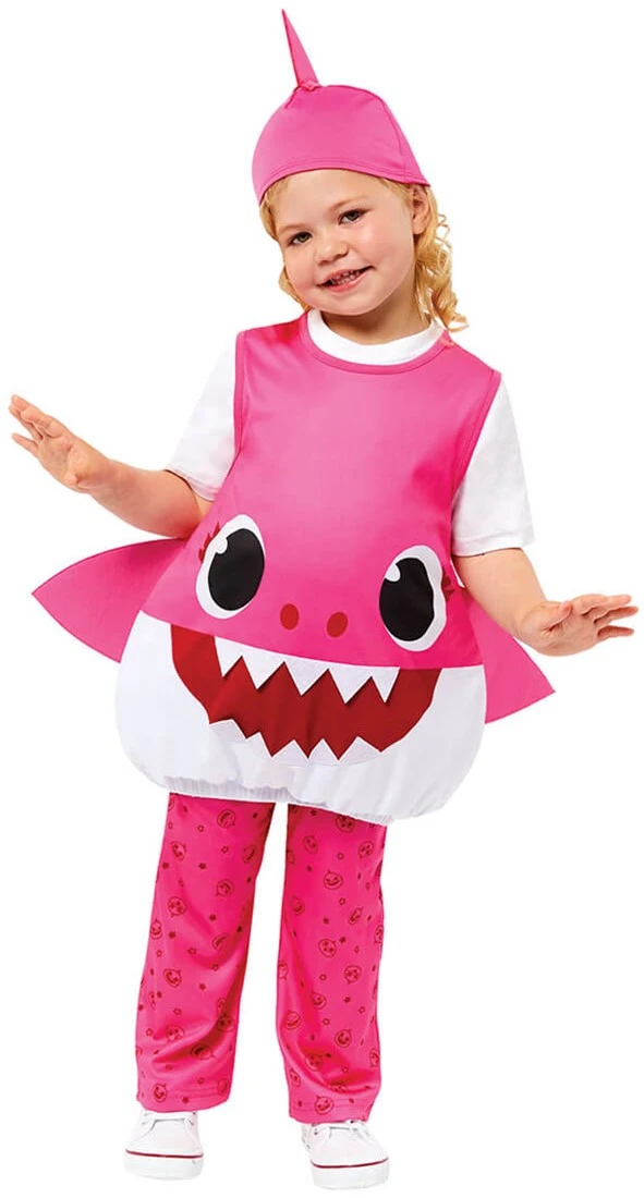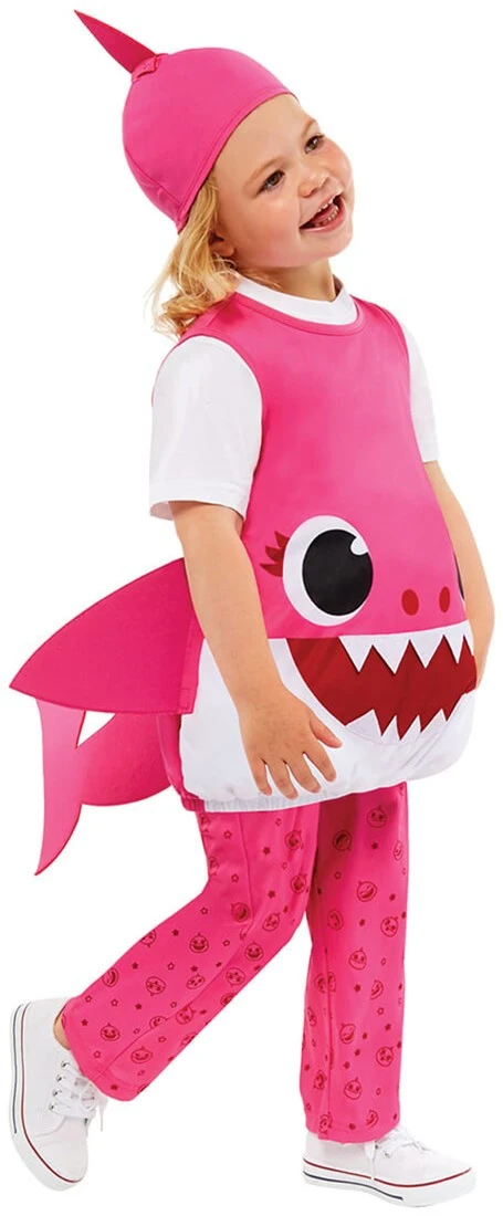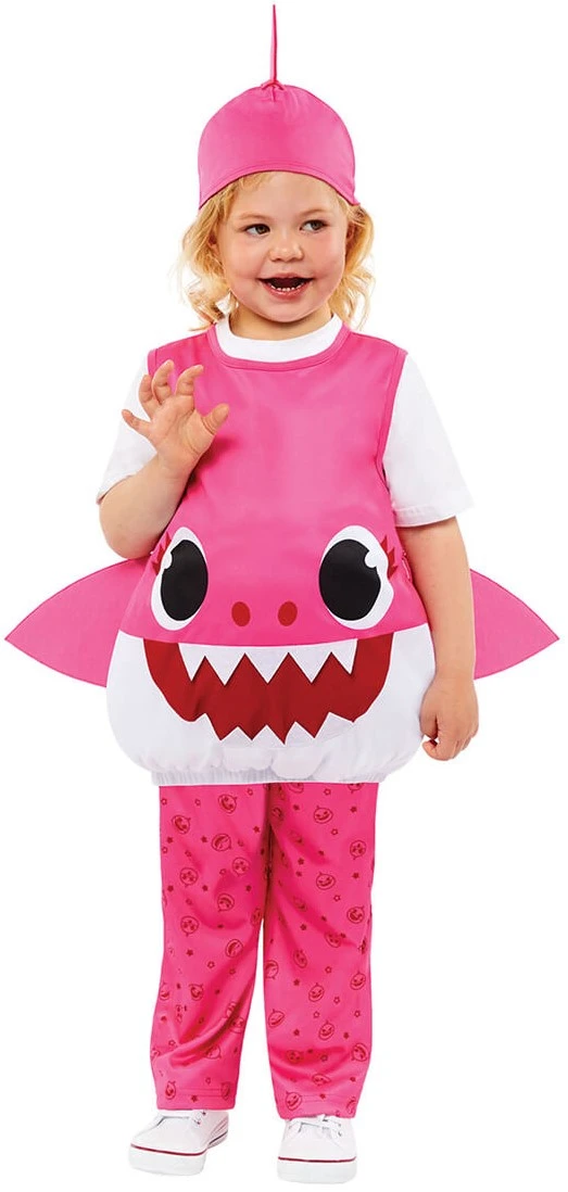 Details tuniek: voorop een haaien gezicht, aan de zijkant de vinnen en aan de achterkant de staart
