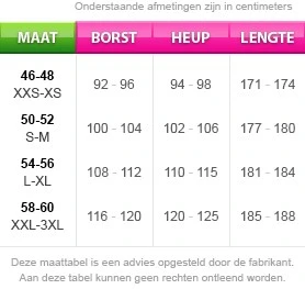 | Heren combinatiematen | 50/52 = S/M |