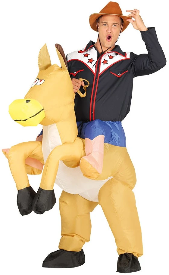 Dit hilarische kostuum doet het net lijken alsof je wordt gedragen door een paard! Het kostuum bestaat uit één geheel en is dus alleen het onderstuk. Dit kostuum bestaat dus uit het paard en de over de schouders hangende blauwe broek.