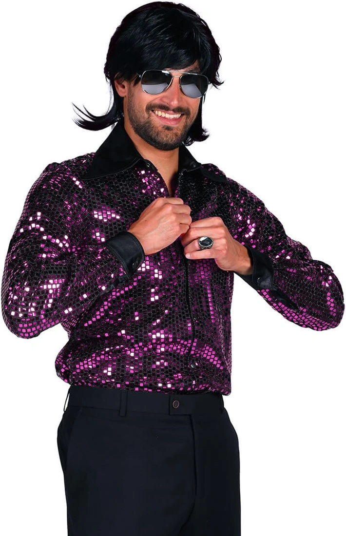 Details: vierkante pailletten en de kraag en manchetten zijn effen zwart