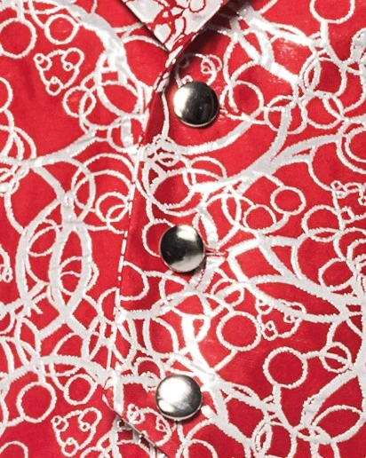 Een mooie rode slipjas met daarop zilver kleurige cirkels. De slipjas is ook verkrijgbaar in het blauw.