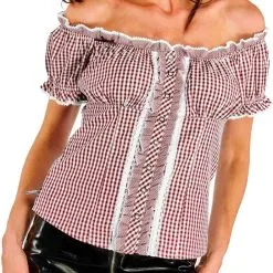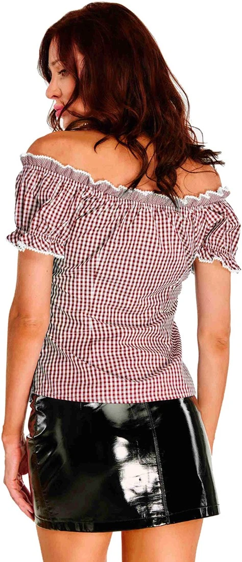 Leuke roze tirolerblouse voor dames. Erg leuk te combineren met een van onze lederhosen of trachten jeans.