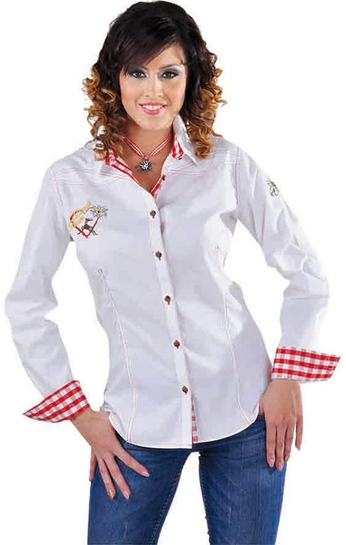 Zeer mooie Tirolerblouse Wit voor dames. De blouse is gemaakt van 100% katoen en is ook in een heren variant verkrijgbaar.
